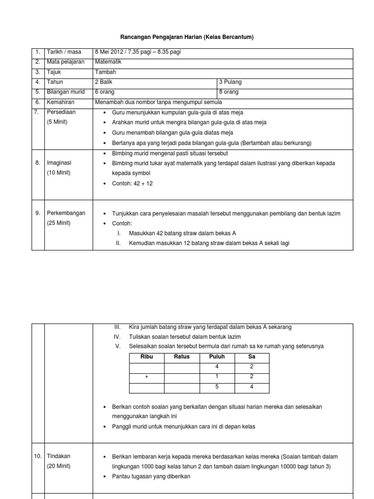 Rancangan Pengajaran Harian Matematik Tahun 2 Doc