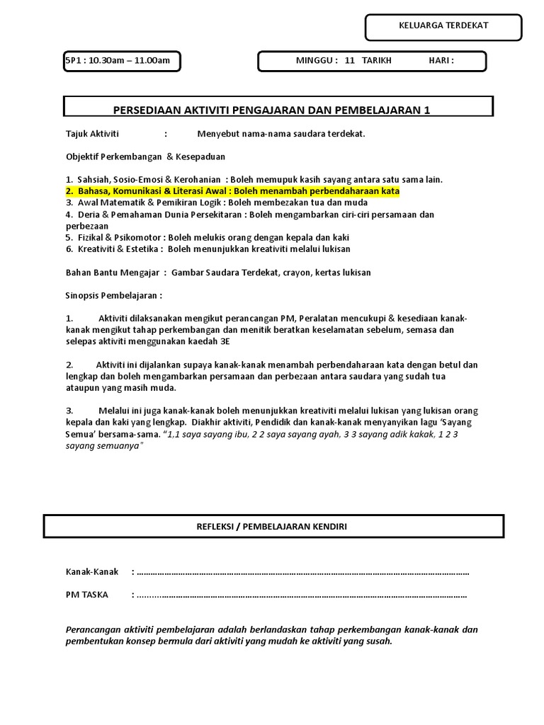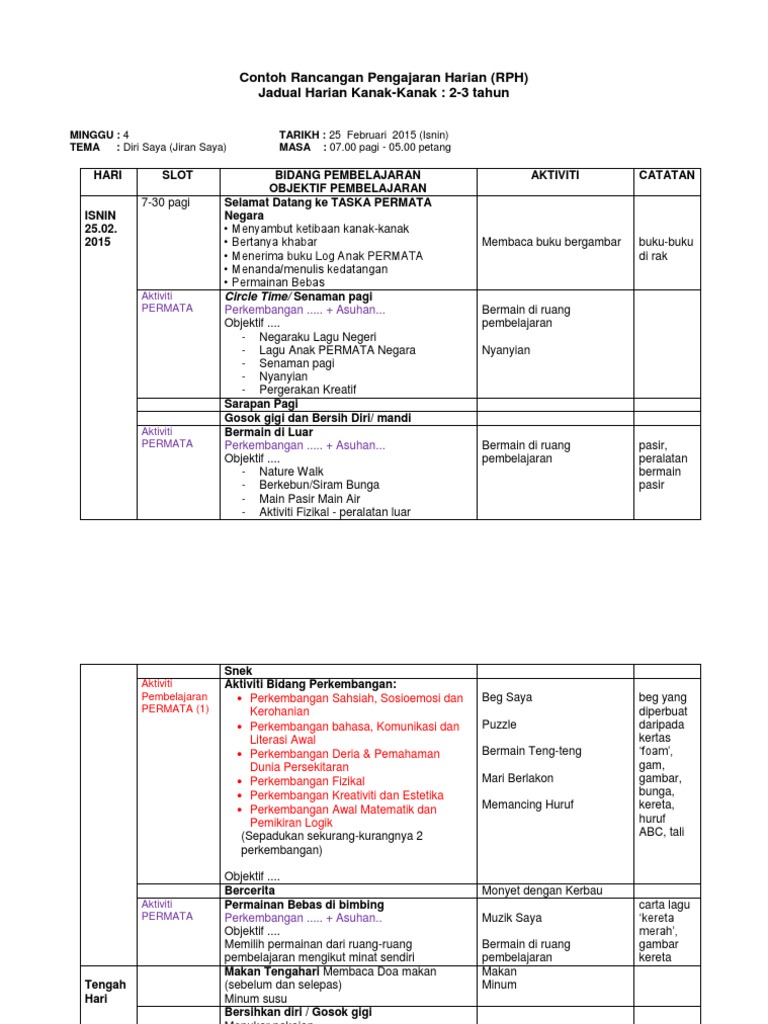Lampiran Rancangan Pelajaran Harian Masa 30 Minit Umur 4 Tahun Standard Course Hero