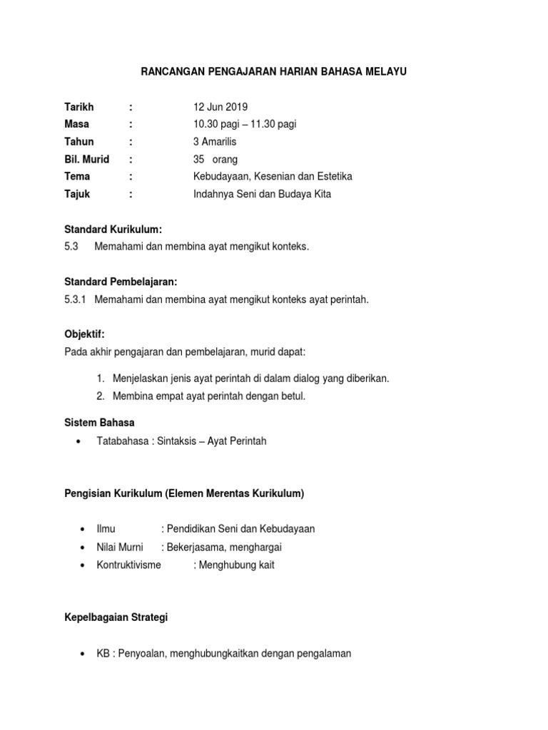 Rph Bm Tahun 3 Minggu 1 Ayat Perintah