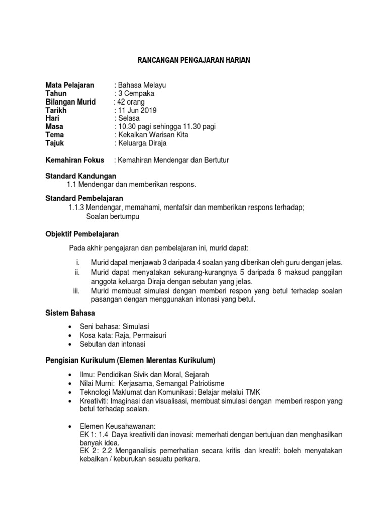 Rancangan Pengajaran Harian Kssr Bahasa Melayu Tahun 3