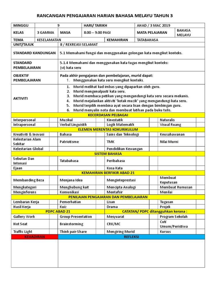 Rancangan Pengajaran Harian Panitia Bahasa Melayu Sk Bukit Balacon Mata Pelajaran Bahasa Melayu Kelas 5 Intelek Tarikh Critical Thinking Education Templates