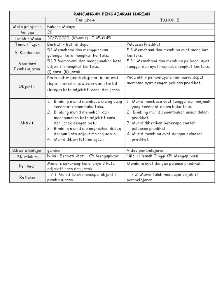 Rancangan Pengajaran Harian Bahasa Melayu