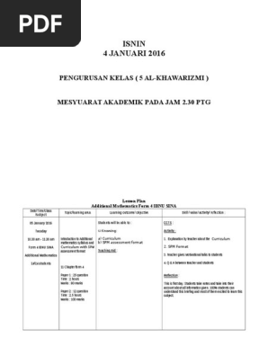 Contoh Rph Matematik Tingkatan 2 En5k5g2preno