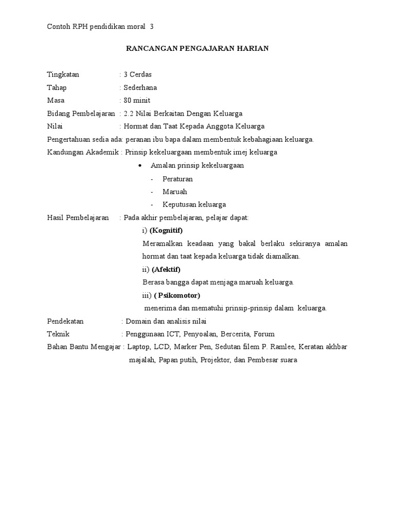 Contoh Rph Pendidikan Moral 3