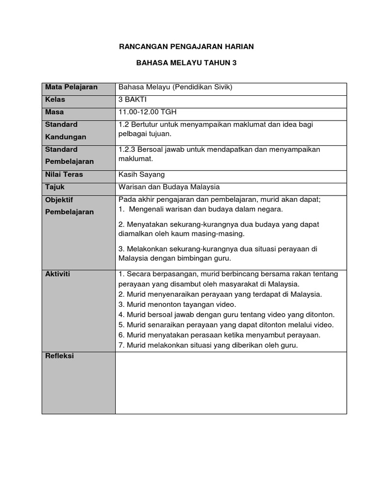 Rph Pendidikan Sivik Kasih Sayang Tahun 1