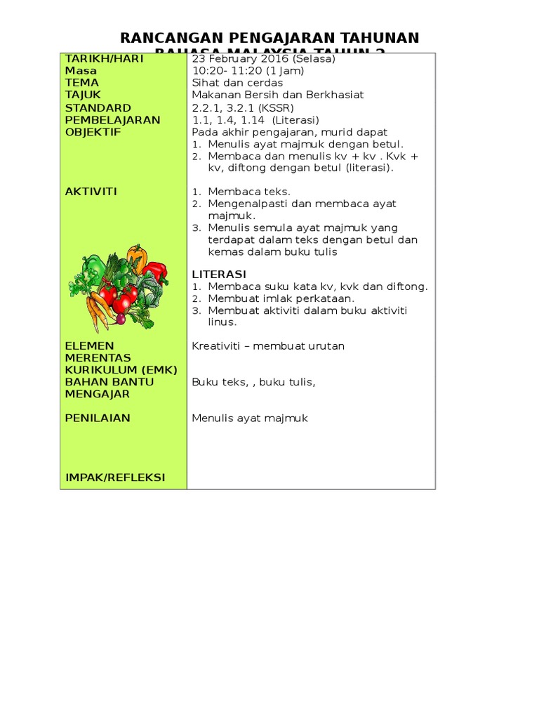 Rph Tahun 2 Kssr Rancangan Mengajar Tahun 2 Pendidikan Kesihatan 1