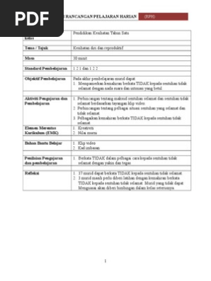 Rph Tahun 1 Kssr Rancangan Mengajar Tahun 1 Pendidikan Kesihatan