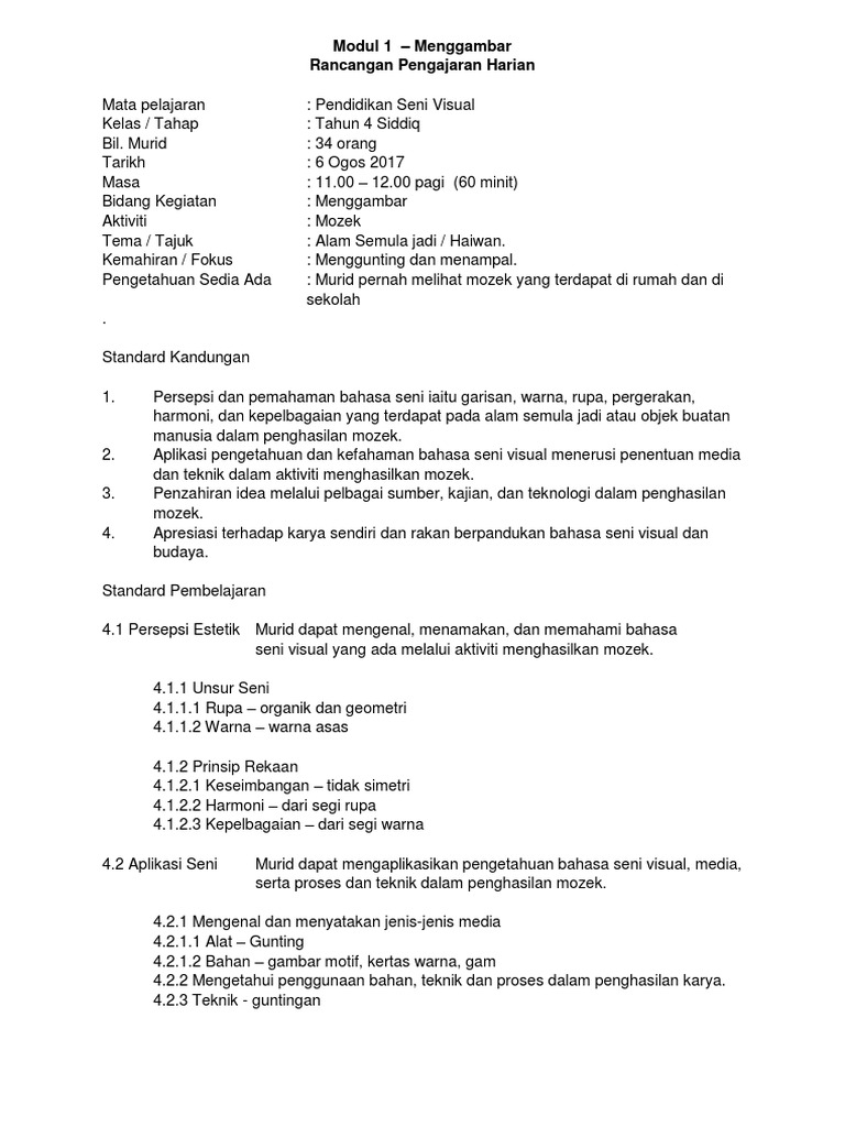 Rph Pendidikan Seni Visual Tahun 4 Permandangan Hutan