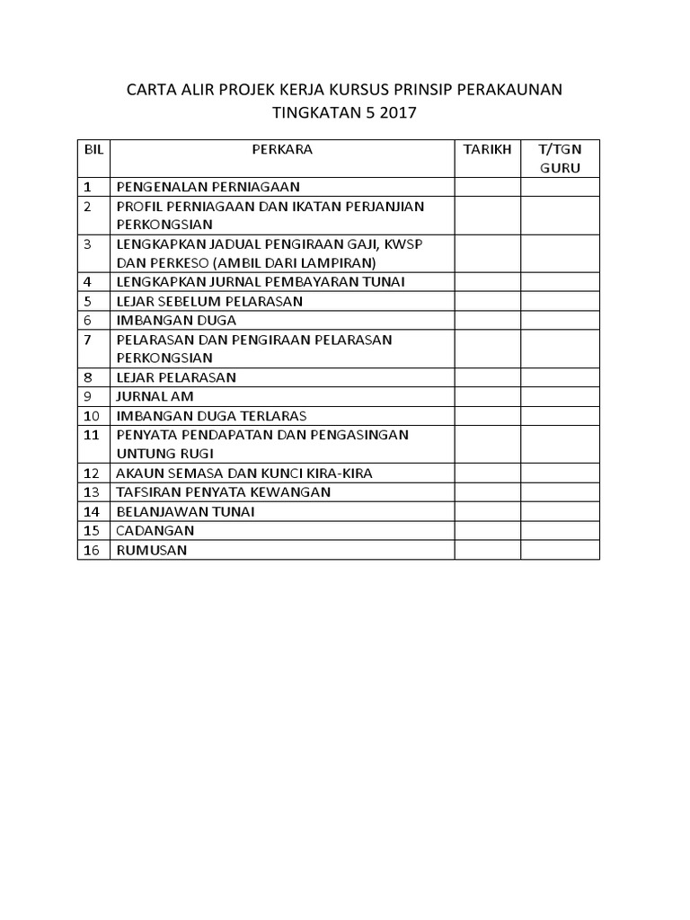 Carta Alir Projek Kerja Kursus Prinsip Perakaunan Tingkatan 5 2017